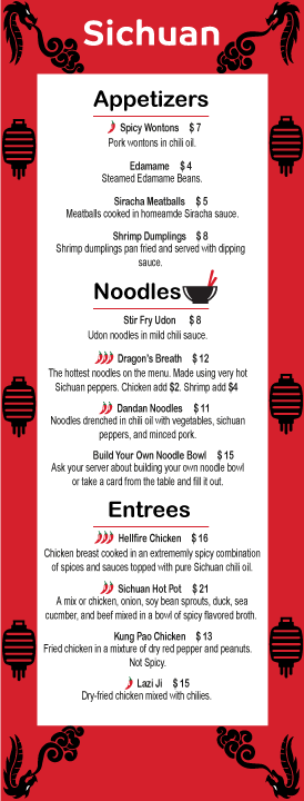 This is my Peppered Pasta Fusion Restaurant. This restaurant blends the spicy dishes of Sichuan with the homestyle comfort of Southern Italy. I created the logo with both places in mind. Obviously the Panda resembles the Sichuan part of the name and the red, white, and green alongside the bowl of pasta resembles the Italian part of the name. I created menus, takeout bags/boxes, posters, ads, and even hats and shirts for this project.